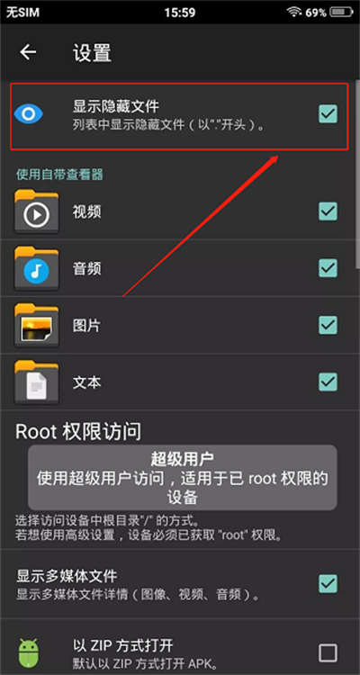 3.然后需要将显示隐藏文件选项勾选即可。