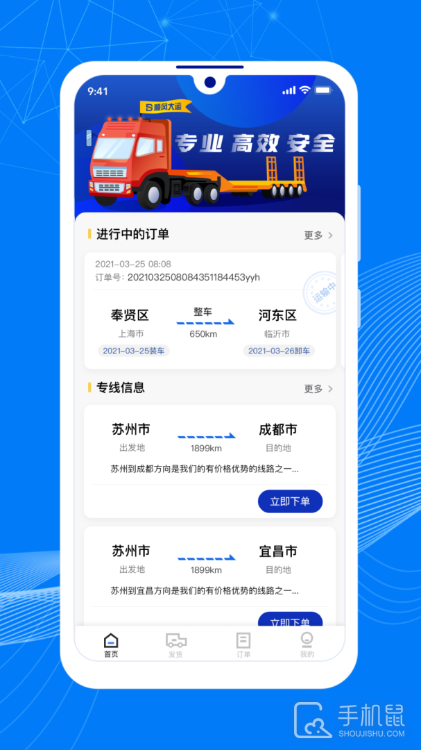 用户在软件的首页中可以查看到货车司机的运输专线信息,可选择专线下单