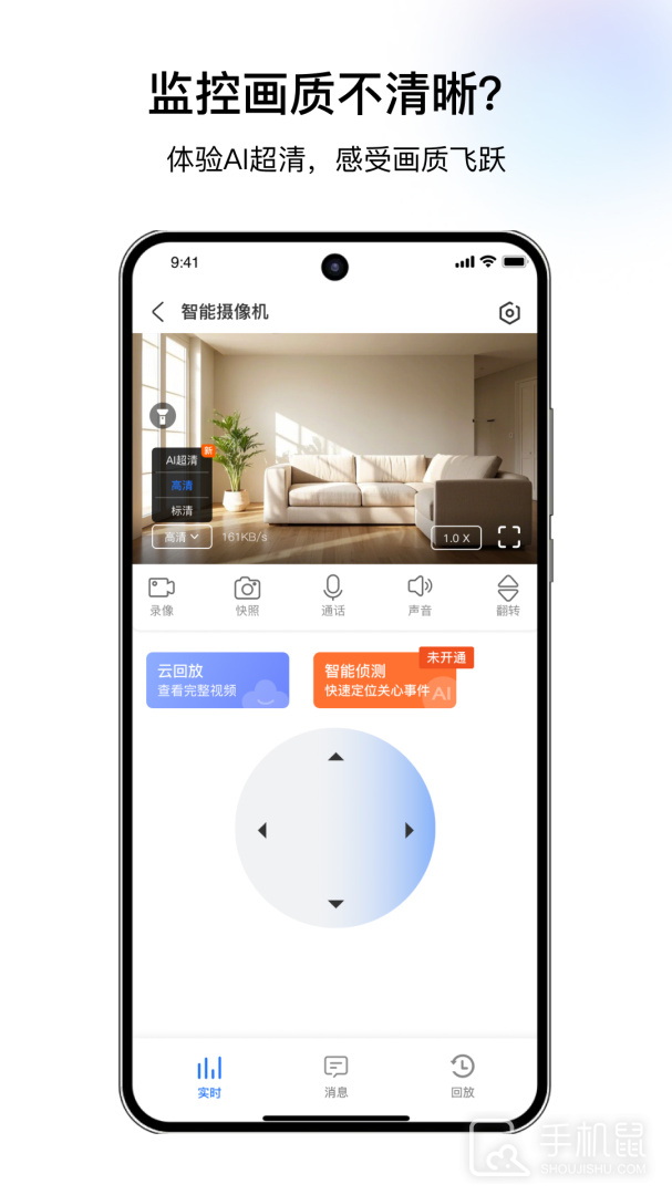 1、通过手机连接智能摄像头后,它可以随时观看清晰流畅的实时图片