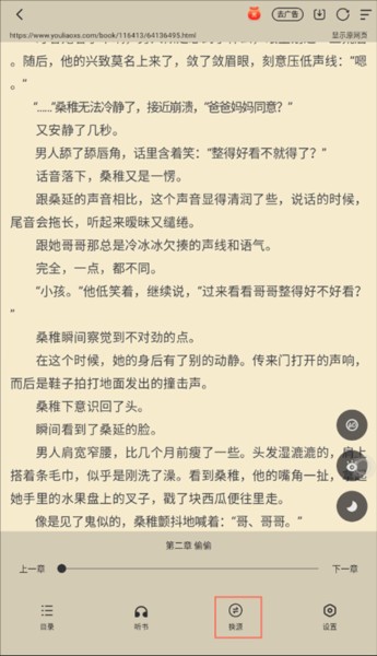 1、同样是在小白阅读小说阅读界面点击屏幕,在底部显示的功能中选择“换源”