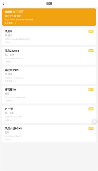 2、在换源界面有着许多书源,你可以点击进行切换阅读。