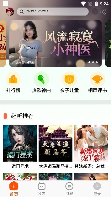 1、首先下载并打开软件,进入到首页可以看到多种类型的音频资源