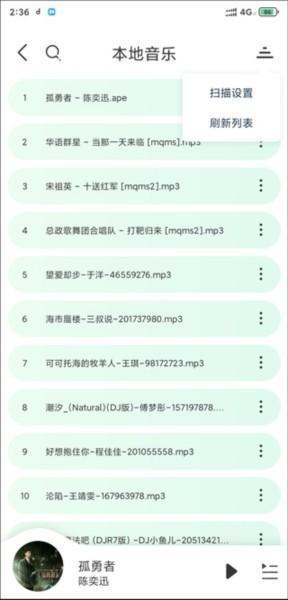 3、点击右上角的菜单选项,进行本地音乐的扫描设置以及刷新列表。