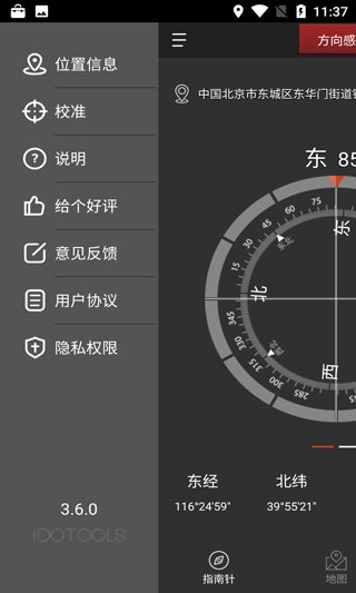 4、点击“地图”,你可以在地图上看到指南针所指位置