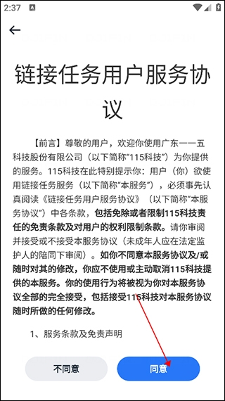 3、在弹出的用户服务协议中点击右下方的“同意”按钮;