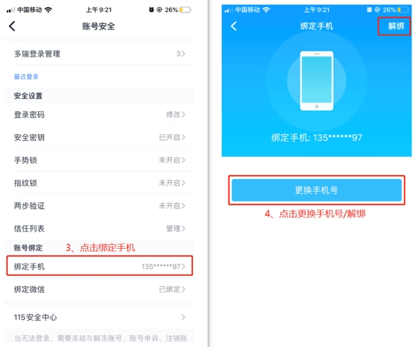 2、点击绑定手机,如需要解绑可以点击右上角「解绑」,如需更换手机号则点击更换手机号后使用新手机号接收验证码验证即可。