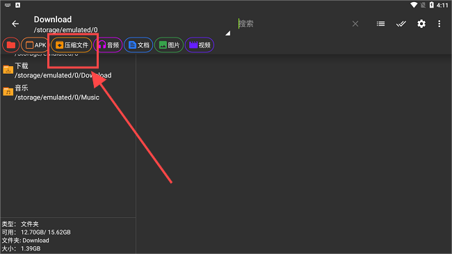 2、压缩包下载完成之后在手机的储存中找到所下载好的文件;