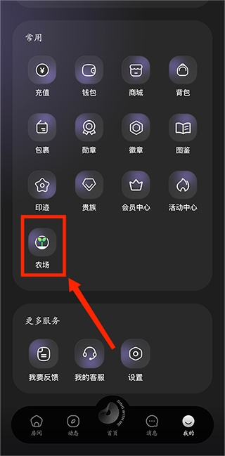 2、找到【常用】里的【农场】,点击打开。