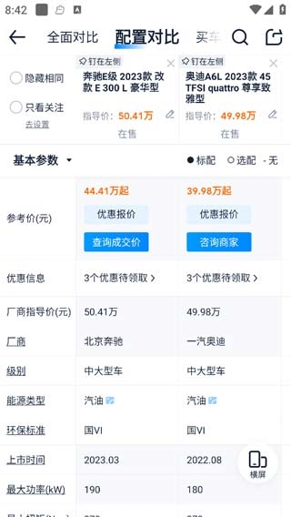 7、最后默认来到车型对比的参数配置选项,可以看到汽车基本参数、车身、发动机、变速箱、内置配置、座椅配置、多媒体配置等多方面参数的对比,当然还可以选择图片对比、口碑对比、综合对比等多个维度的对比等。