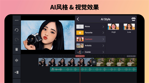 - 高级功能:色度键(绿屏)、速度控制 (加速、慢动作视频)、视频倒放、智能抠像