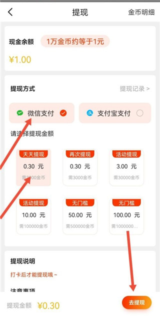 4、进入提现界面,接下来先绑定微信号,然后点击要提现的金额,再点击去提现即可。