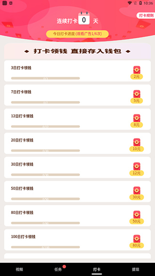 7、还可以打卡赚钱,每天都会有相应的奖励