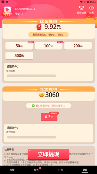 同时,我们的应用程序提供的红包提现的金额也不断上升,都是根据大家刷到的视频数量来确定的,让您的收益更加丰厚。