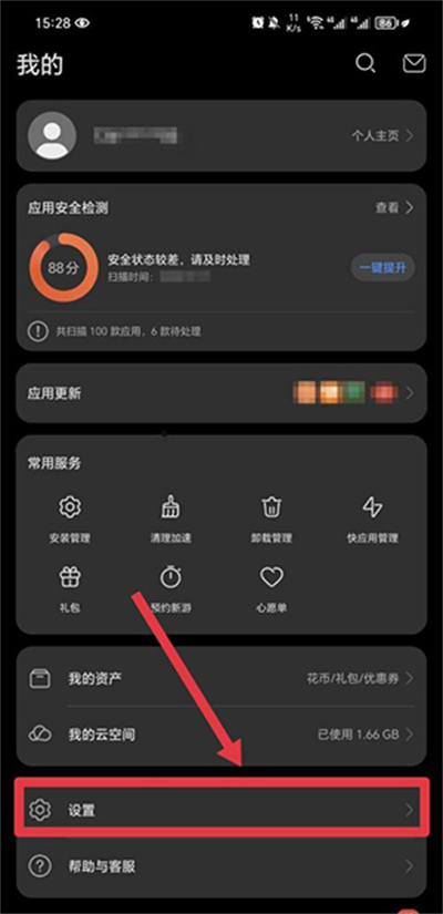 2.然后点击设置选项。