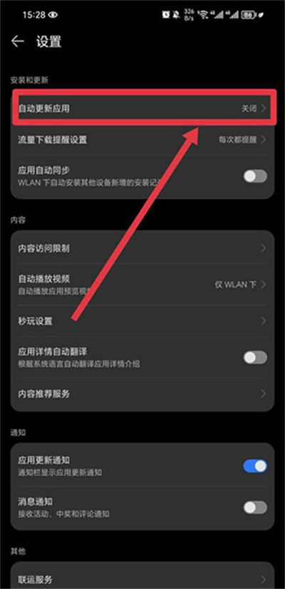 3.接着找到自动更新应用并将其开启即可。