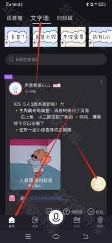1、进入声昔后,首先点击“首页”上方的“文字墙”,再点击右下侧的“编辑”按钮