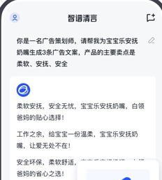 2、致力于降低用户使用门槛,实现智能工具普惠平等。用户只需要确认自己要完成的任务,产品就可结合用户的输入行为理解用户意图,匹配到最适用的模板,还可以根据提示增加条件描述。