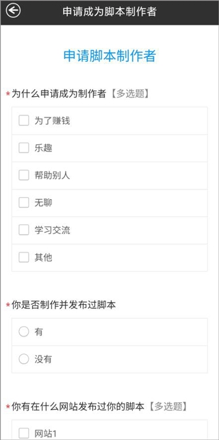 2、打开之后,申请脚本制作者,填写内容;