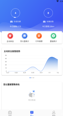 3,图像显示,智能统计,用户能够通过软件的各种数据内容来进行不同类型的模式来统计各种优质数据,包括百公里统计,行车报警以及数据发布图表,观察更简单。