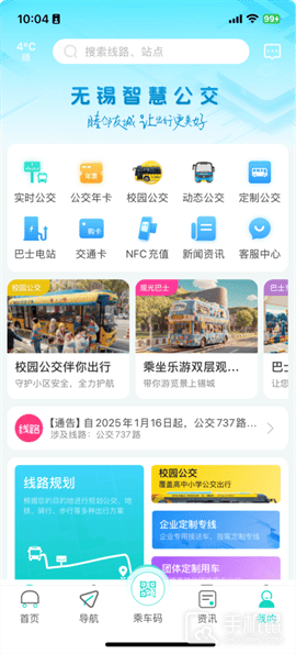 无锡智慧公交是一款专注于优化城市公共交通出行的安卓应用。集成了实时公交查询、路线规划、票务购买、车辆监控等功能,旨在提高居民出行的便利性和效率。