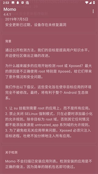 Momo是一款检测root与系统环境的APP,检测我们的设备是否被root以及系统环境是否存在异常。