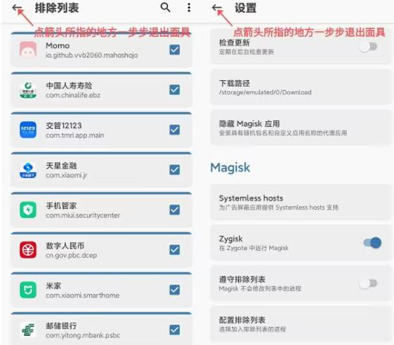 直接打开德尔塔面具,在面具设置里,打开magisk hide并且配置排除列表,将你需要隐藏root的软件打钩处理