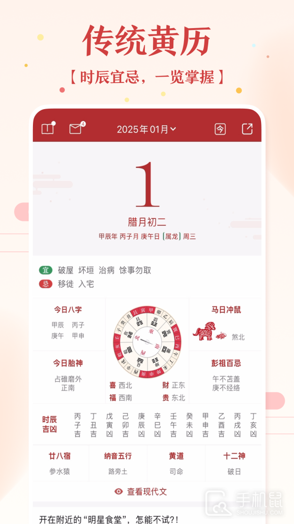 2、传统黄历宜忌:关注每天该做的事,事事顺利!