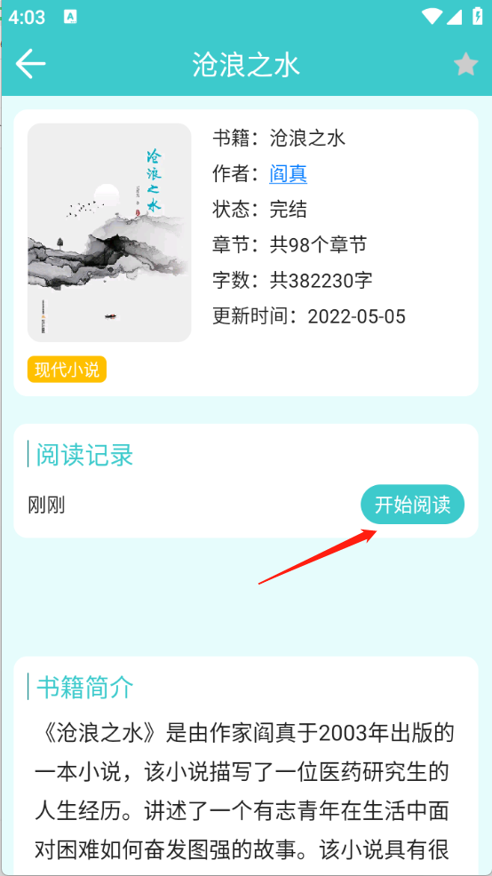 5、点开想看的小说进入详情页点击“开始阅读”。