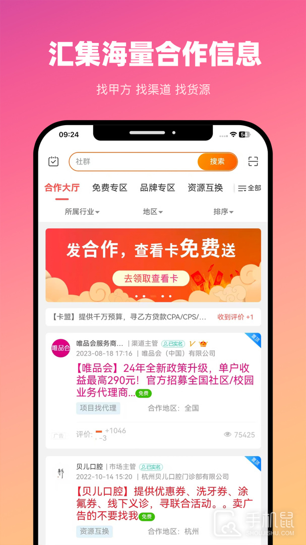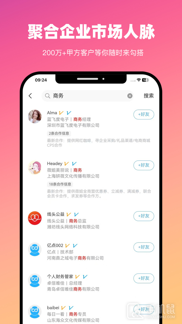 2.用户通过软件可以找到各种甲方资源,快速的合作获得更多资源;
