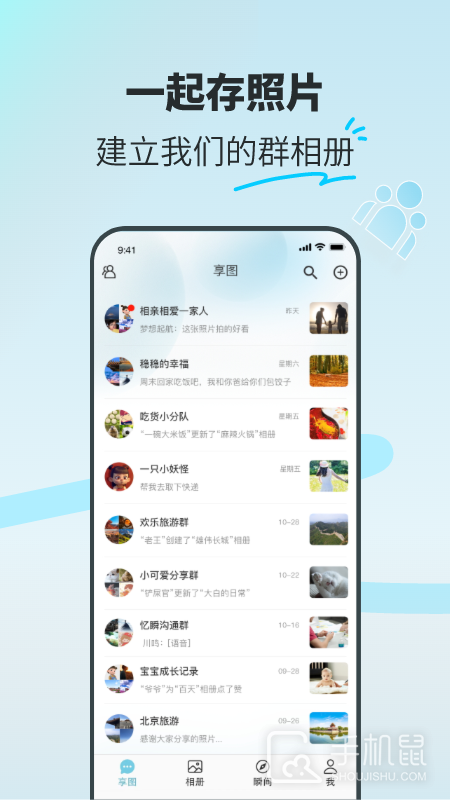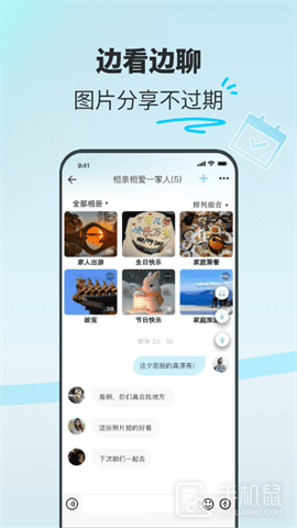 实时共享群相册,支持多人同时上传、浏览、评论、点赞、聊天,随时和亲友分享互动。