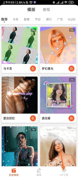 1.各种模板都有,用户能轻松制作各种vlog