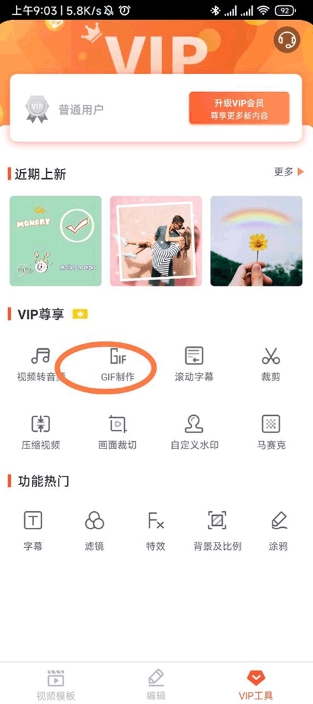 进入后我们可以在vip尊享界面找到GIF制作,找他并使用。