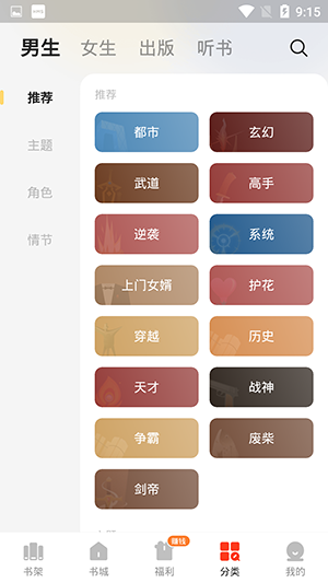 6.在分类板块中能够查看各种题材风格类型