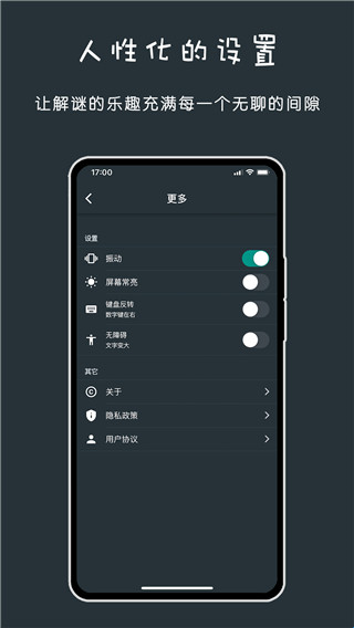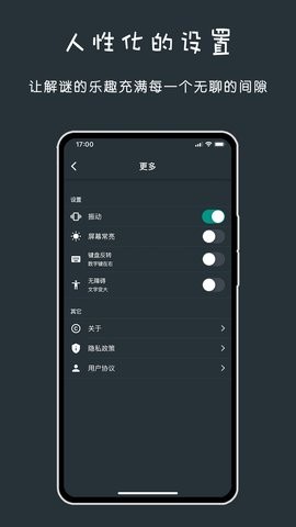4、实用辅助功能:如屏幕常亮、键盘翻转和无障碍设置,确保流畅的闯关过程。