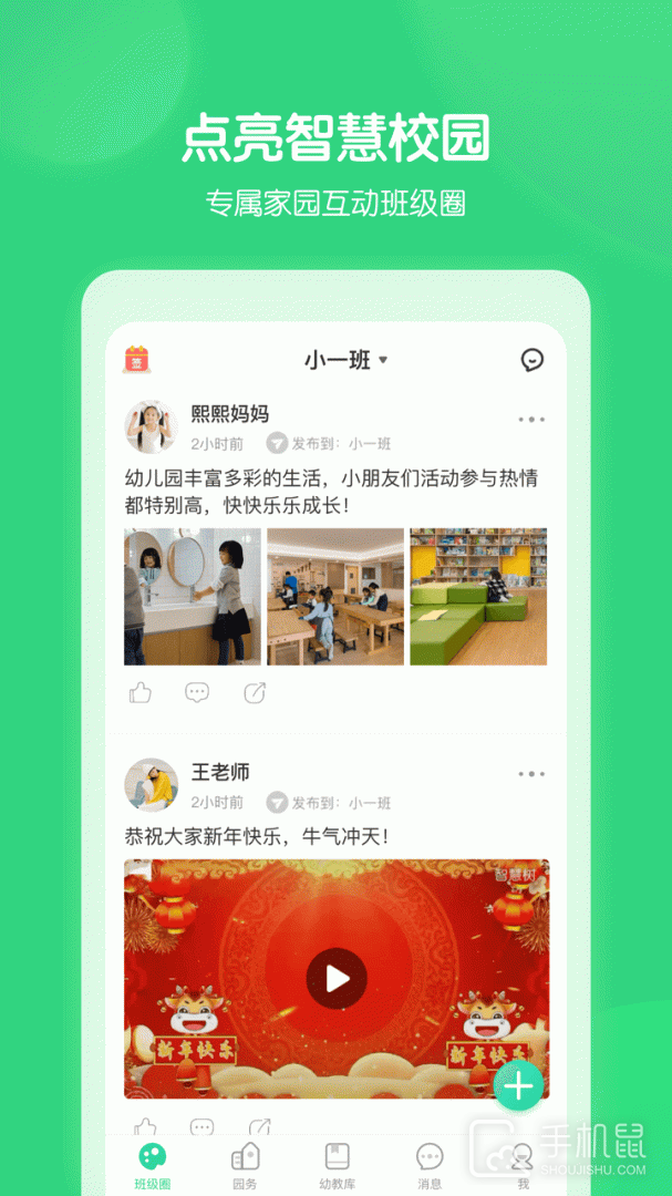 2、即便不在身边,对孩子的关心依然不变。现在开始,在手机上即可随时随地查看?班级相册?、?班级通知?、?老师点评?、?幼儿园动态?等内容,实时和班级老师互动,让自己随时了解宝宝在幼儿园的情况