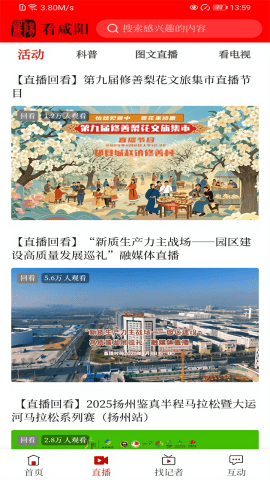 看咸阳app手机版是一款专门专门为咸阳市地区打造的新闻热点平台,它里面提供了大量的新闻资讯内容,每天都有最新最快的热门话题,并且通过图文,视频,直播等多种方式播报,可以满足不同用户们的需求,闲暇之余打开看看,掌握更多本地新闻消息。