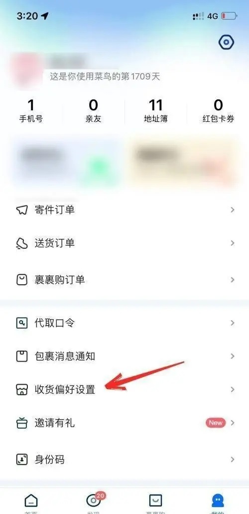 打开菜鸟后,点击我的