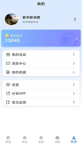 4、在个人中心就能查看自己参与的活动、收藏的内容以及获得的积分数据;