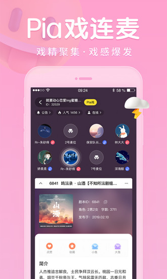 创新的在线多人语音配音秀软件,用户通过实时语音进行用户声音演出,角色扮演等。是年轻人的新社区,网友们的聚集地,提供众多精品剧情歌,或者剧本,用户可以在软件上找到心仪的小伙伴一起用声音表演。