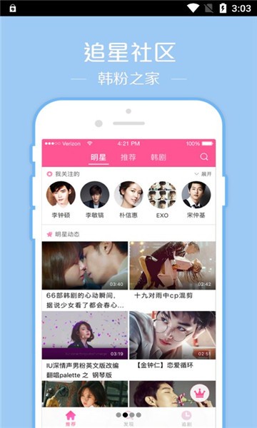 韩站是一款非常方便有趣的韩娱兴趣交流社区,在这里你可以找到你喜欢的明星的各类最新消息,还可以观看自己喜欢的影视视频,与同担们分享自己喜欢的八卦,平台每日都会实时更新韩娱最新最全面的娱乐资讯,让你能够随时掌握第一手资料,非常适合喜欢八卦的追星族使用哟,喜欢韩娱的小伙伴们千万不要错过哟,快来下载体验吧!