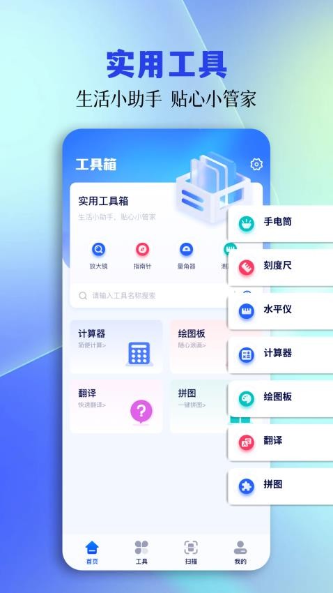 3、节省空间:多种工具集成在一个APP中,避免用户下载多个单一功能的软件,有效节省手机存储空间。