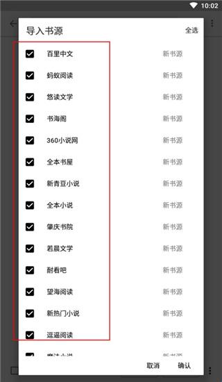 5、成功读取到了书源,用户可以根据需求选择导入;