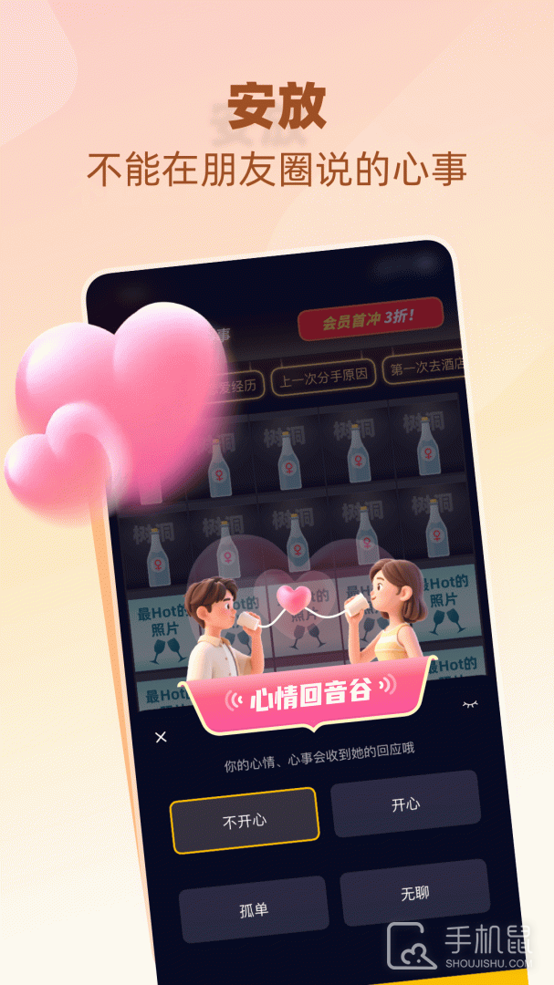 树洞小酒馆是一款匿名社交平台,用户可以在其中发表各种疑问、分享心情或倾诉困扰,其他用户可以匿名回复和提供建议,这款app可以提供心理宣泄的空间,让用户释放压力并获得支持和帮助。