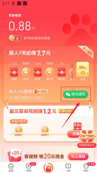 百度极速版怎么提现?