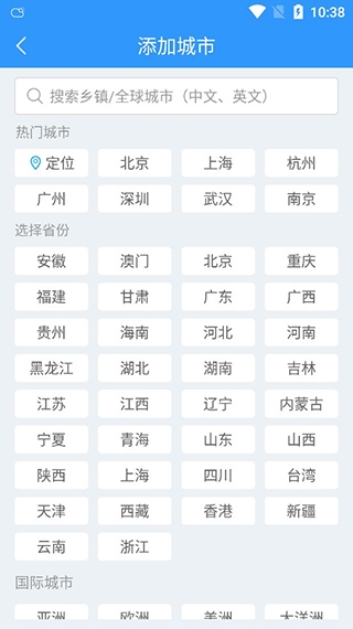2、在众多城市中找到自己所在的城市,当然也可以使用自动定位功能;