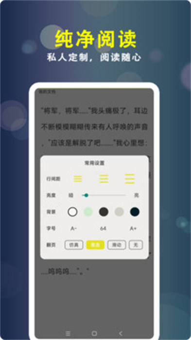 1、多功能集成:本款软件中为用户提供多种功能,如自定义字体、背景等,满足读者需求,营造舒适环境。