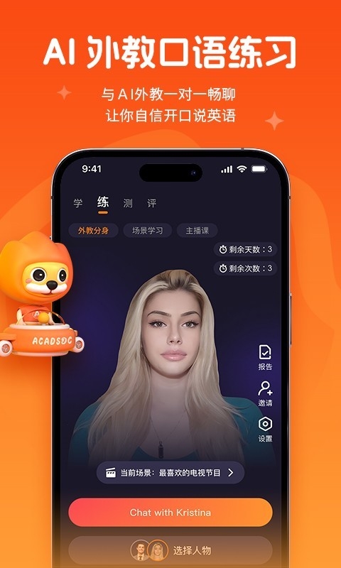 用户可以在应用上进行英语的口语表达练习,测试英语口语能力;