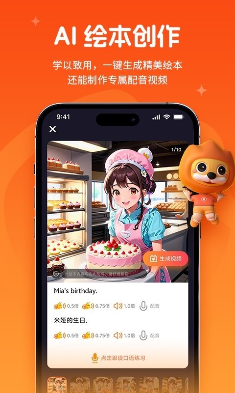 可以在绘本中跟随绘本内容进行口语练习,制作成为绘本对应的视频;