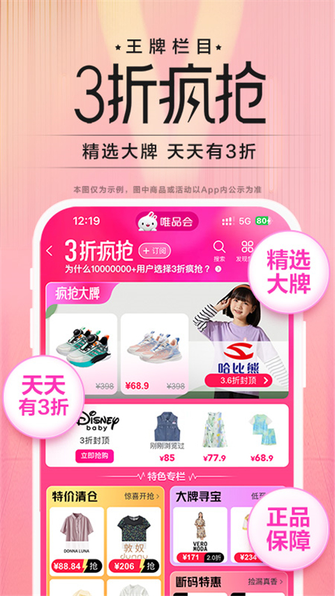 唯品会APP 是国内领先的在线购物平台之一,专注于销售品牌折扣商品。该应用以1-7折的超低折扣对全球各大品牌进行限时特卖,商品种类涵盖名品服饰、鞋包、美妆、母婴、居家等上千个品牌。所有商品均经过官方认证和质保,确保用户在享受低价的同时,也能购买到100%的正品,真正做到买得放心、用得安心。