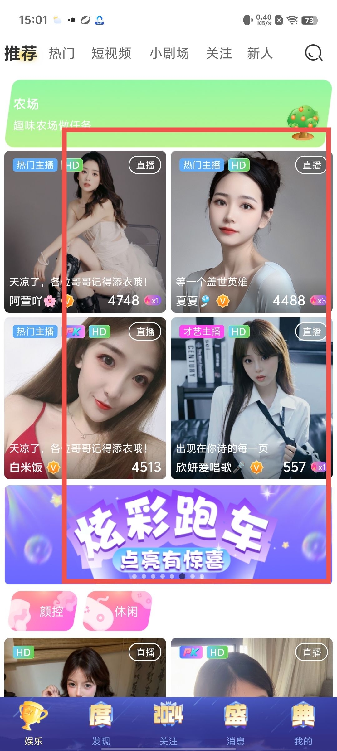 第一步,打开软件后就可以看到各种直播视频点击进入。